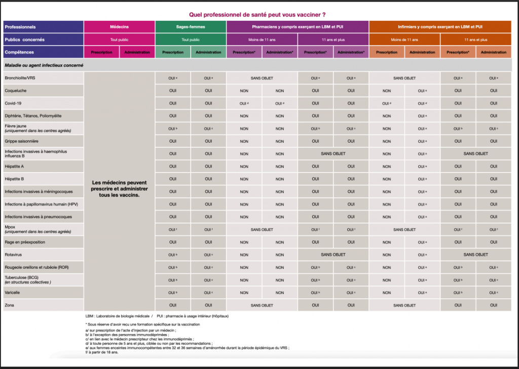 Compétences vaccinales des pharmaciens, infirmiers et sages-femmes :